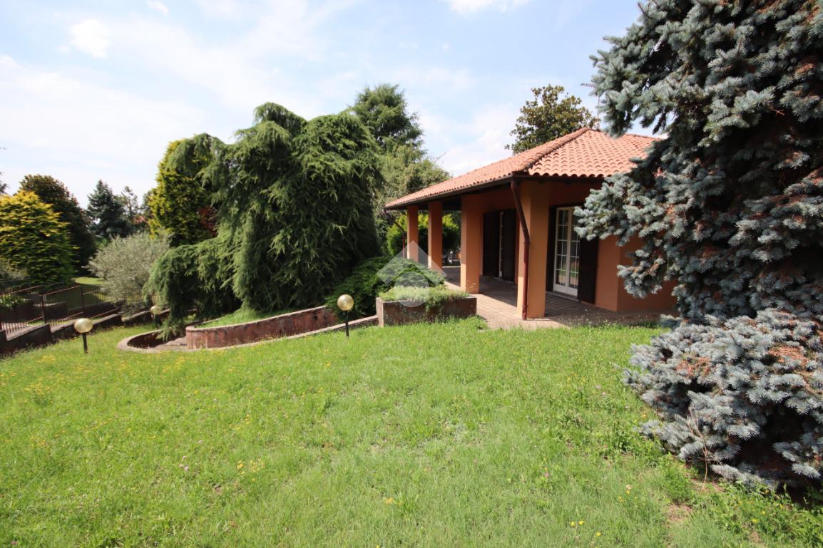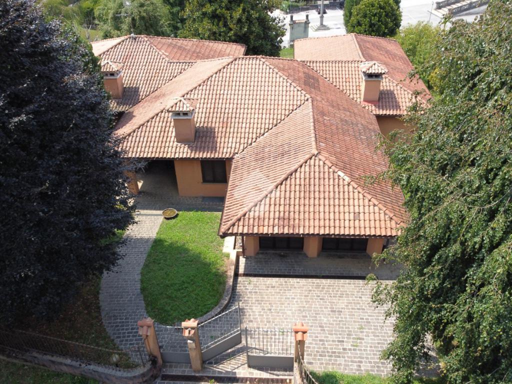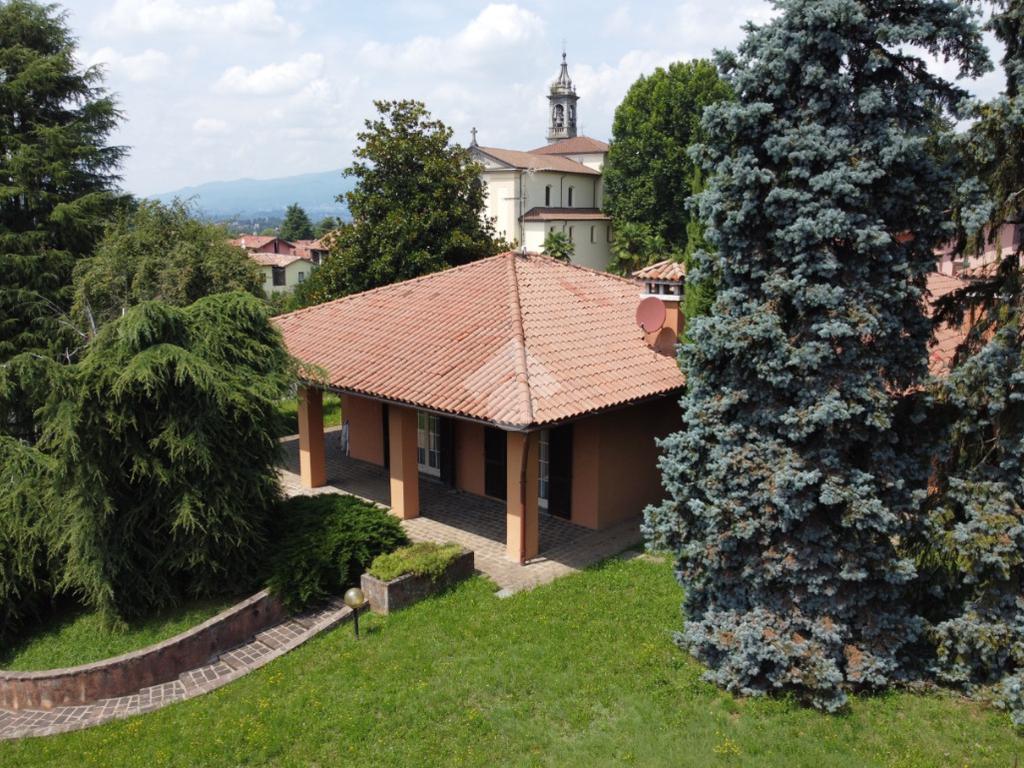 CASSAGO BRIANZA: In panoramica posizione, all’interno dello storico e prestigioso Ex Parco Visconti di Modrone proponiamo importante villa singola disposta tutta su un unico piano di abitazione oltre l’interrato. Percorrendo il vialetto di ingresso attraversiamo il giardino e raggiungiamo l’ingresso della casa, protetto da un bel portico. All’interno ci accoglie un salone doppio caratterizzato da ampie finestre che lo rendono molto luminoso e dalla parete col camino che dona un tocco di eleganza e lusso alla zona living, dal salone si accede ad un secondo portico che affaccia sulla parte più nobile e panoramica del giardino: lo spazio ideale per pranzi e cene all’aperto durante la bella stagione. La zona pranzo è suddivisa in cucina e tinello. Il reparto notte, distribuito da un grande disimpegno dove trovano spazio armadi a tutta altezza, è composto da 4 coode camere di cui una master-room con spogliatoio e bagno dedicati, altri due bagni completano i servizi di cui il primo piano è dotato. Al piano terra è ubicato anche il Box doppio in larghezza con accesso diretto all’appartamento. Al piano interrato troviamo la classica taverna open space ideale per biliardo, ping-pong, grande tavolo per momenti conviviali e ludici, un bagno/lavanderia oltre alla centrale termica ed altri spazi ad uso deposito. Il giardino che circonda la casa è ben piantumato e dona a questa villa la giusta privacy. La casa necessita sicuramente di interventi di adeguamento impianti e le finiture risalgono agli anni della costruzione ma, le caratteristiche di costruzione, il bellissimo giardino e la posizione panoramica fanno di questa abitazione una villa unica, difficile da trovare sul mercato e dalle grandissime potenzialità.